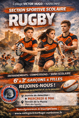 Par admin victor-hugo-narbonne, publié le dimanche 29 mars 2026 17:01 - Mis à jour le lundi 30 mars 2026 16:55Mercredi 6 mai Terrain de la Plaine (Parc des sports) - En pj le formulaire d'inscription -